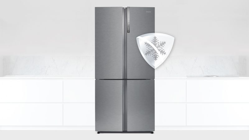 Haiers innovative Total No Frost-Technologie verhindert, dass sich in Ihrer Kühl-Gefrierkombination Frost bildet, was die Wartung erheblich vereinfacht. Der „Fresher Shield“ (Frischeschild) verhindert, dass beim Abtauvorgang warme Luft in das Gefrierfach gelangt, sodass Ihr Gefriergut geschützt bleibt und unnützer Energieverlust vermieden wird. Von jetzt an brauchen Sie Ihre Kühl-Gefrierkombination nie wieder selbst abtauen.