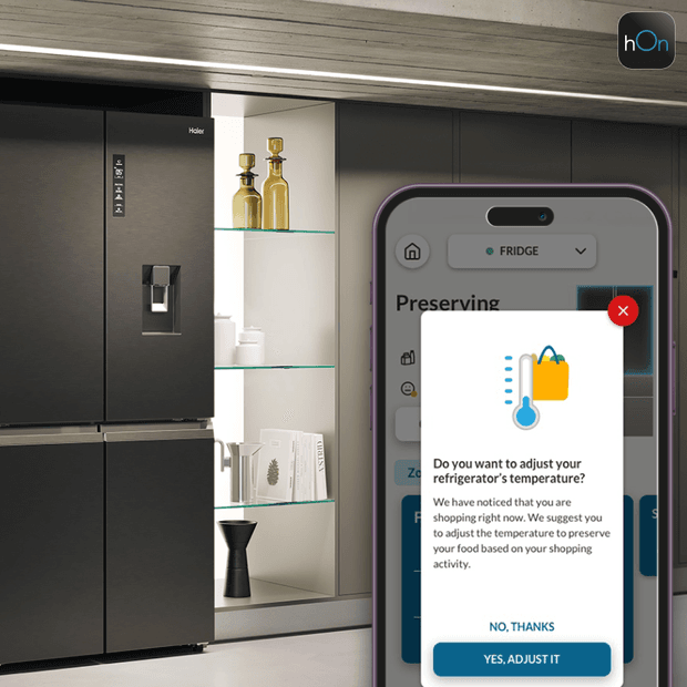 Personnalisez les paramètres de votre réfrigérateur à votre emploi du temps chargé et restez informé de vos besoins grâce à l’application hOn, pour que votre réfrigérateur s’adapte à votre mode de vie.
