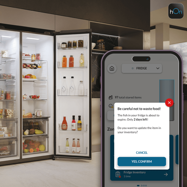 L’application hOn offre un contrôle total sur votre réfrigérateur, vous aide à faire vos courses et vous guide dans vos recettes préférées, simplifiant ainsi votre expérience en cuisine.