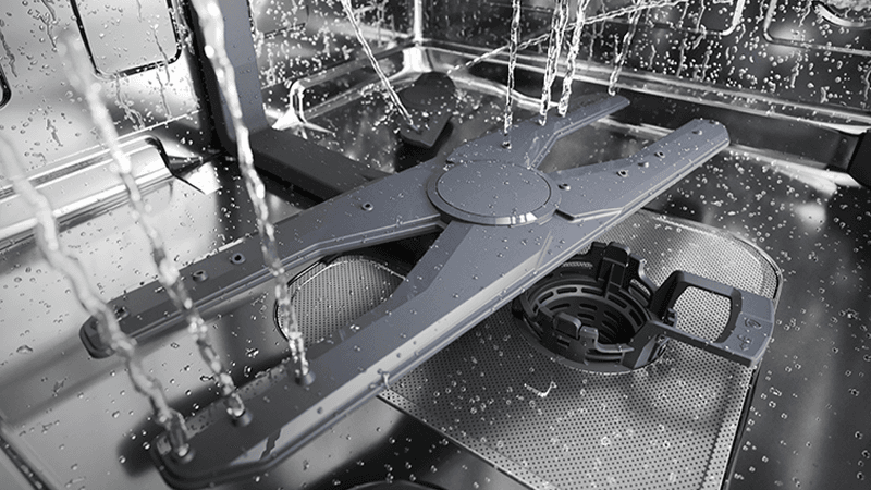 H-Spray Arm to przełomowa technologia dolnego mechanizmu natryskowego w kształcie litery „H”, która pozwala uzyskać lśniąco czyste naczynia nawet przy krótkich programach. Podwójny ruch ramienia w obu kierunkach zwiększa zasięg strumienia wody i maksymalizuje skuteczność mycia.