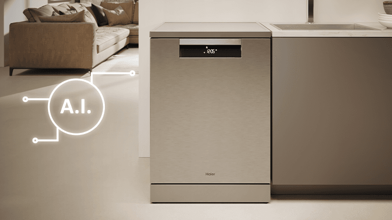 *Porównując Haier I-Pro Shine Series 6 i 7 z Haier WashLens Series 5 (wewnętrzny test wydajności zmywania zgodnie z normą EN 60436:2020 przy normatywnym obciążeniu 14 kompletów naczyń, normatywnym zabrudzeniu + zabrudzeniu o dużej intensywności dla sztućców, program Szybki 59').