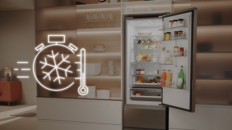 Vďaka umelej inteligencii, ktorá predvída vaše potreby, upravuje táto inovatívna funkcia teplotu chladničky na základe vašich zvyklostí, vonkajších poveternostných podmienok a geolokácie obchodu, kde nakupujete potraviny.