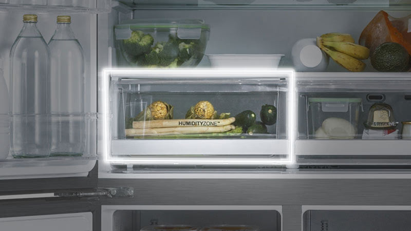 V prostoru Humidity zone je udržována 90% hladina vlhkosti vzduchu, což jsou ideální podmínky pro ovoce a zeleninu. Tím, že je zabezpečena stálá cirkulace chladného vzduchu, potraviny zde uložené zůstanou déle čerstvé a zároveň si zachovají svou nutriční hodnotu.