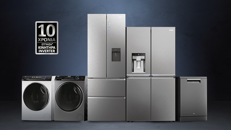 Εγγραφείτε τώρα και επωφεληθείτε από 10 χρόνια Επέκταση Εγγύησης στον κινητήρα Inverter των Πλυντηρίων Ρούχων, Πλυντήριο-Στεγνωτηρίων, Πλυντηρίων Πιάτων και Ψυγείων της Haier. Συμπληρώστε την παρακάτω φόρμα εγγραφής εντός 60 ημερών από την αγορά της συσκευής σας και θα λάβετε μέσω email επιβεβαίωση για την επέκταση της Εγγύησης για 10 χρόνια, που καλύπτει Ανταλλακτικά και Εργασία.