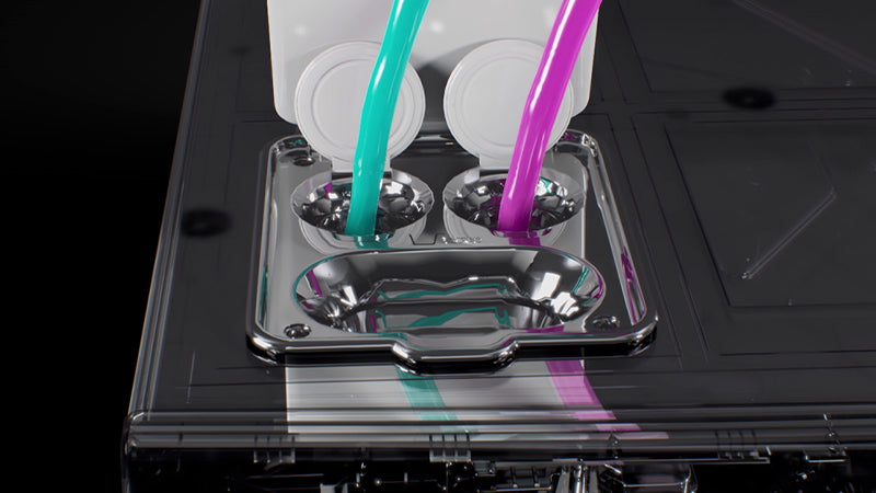 Provides a precise dosing of detergent and softener based on automatic recognition of laundry weight, water hardness and program requirements.
