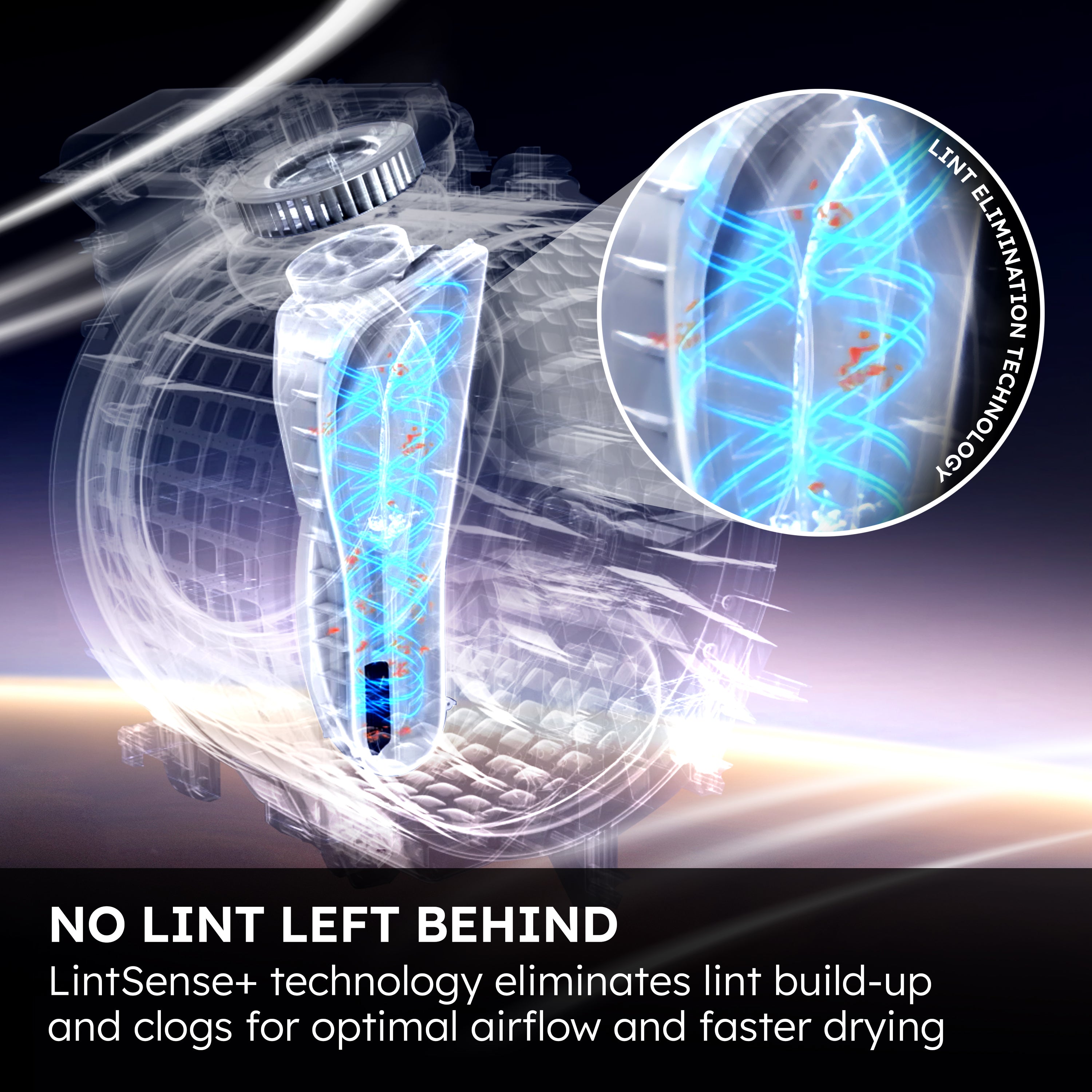 - Lint Removal System: Patented self-cleaning reduces fluff buildup for better performance.
