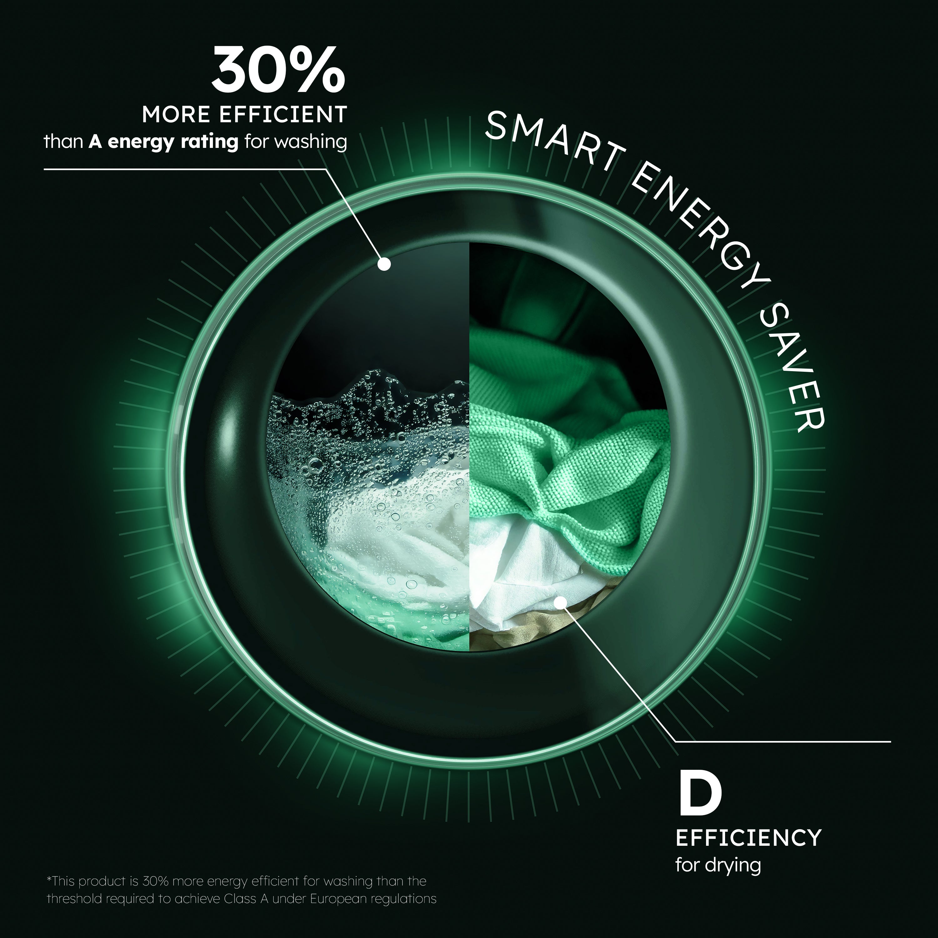 The X 7 Washer Dryer - Graphite - 10/6KG delivers tailored laundry with a focus on flexibility and hygiene. Flexy Time adapts cycles to your schedule, while ABT® technology eliminates 99.99% of bacteria. The Dual Spray system removes detergent residue, ensuring fresh, high-performance results every time.