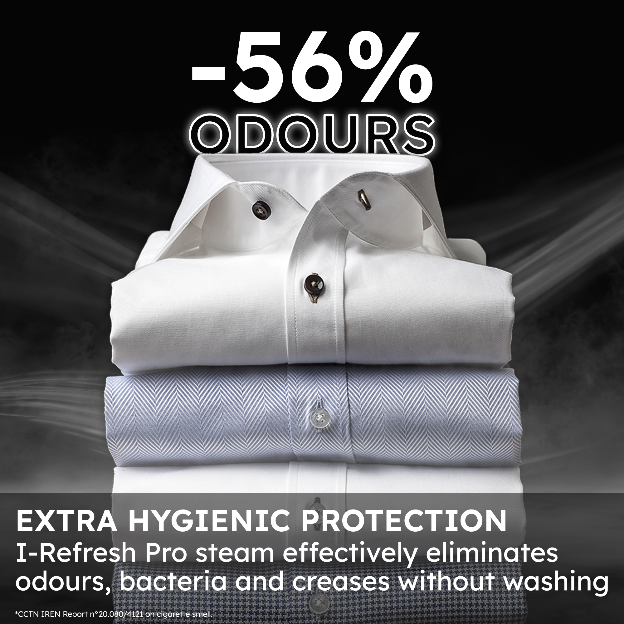 - Steam refresh, no wash needed: I-Refresh Pro reduces wrinkles and odours without water waste.