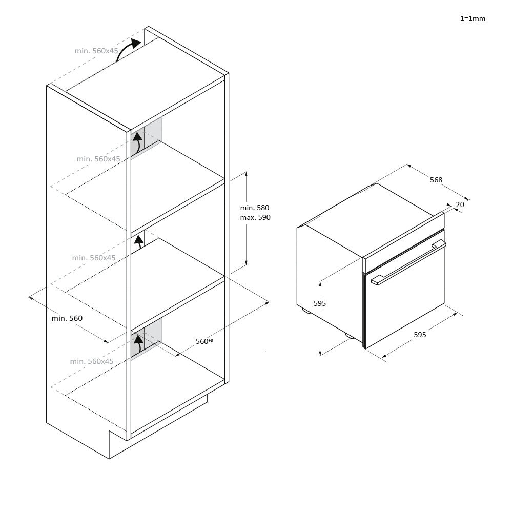 | Dimensions of the product (mm) | 595 x 595 x 568 |