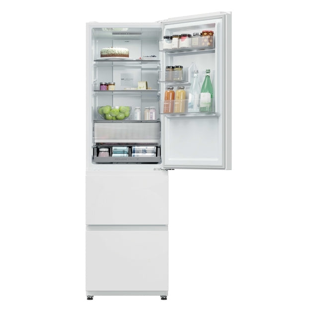Haier 3D 55 Series 3 - White - 303L deliver the benefits of a larger 3 door fridge in a compact 55cm design. The smart freezer drawer system offers easy access, optimized storage, and up to 30% energy savings, while Fresher Tech® features like Air Surround ensure top-quality food preservation.