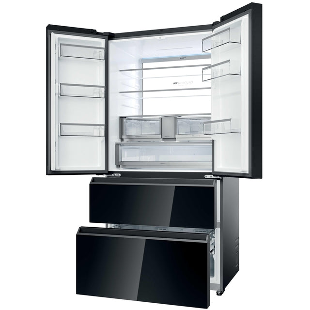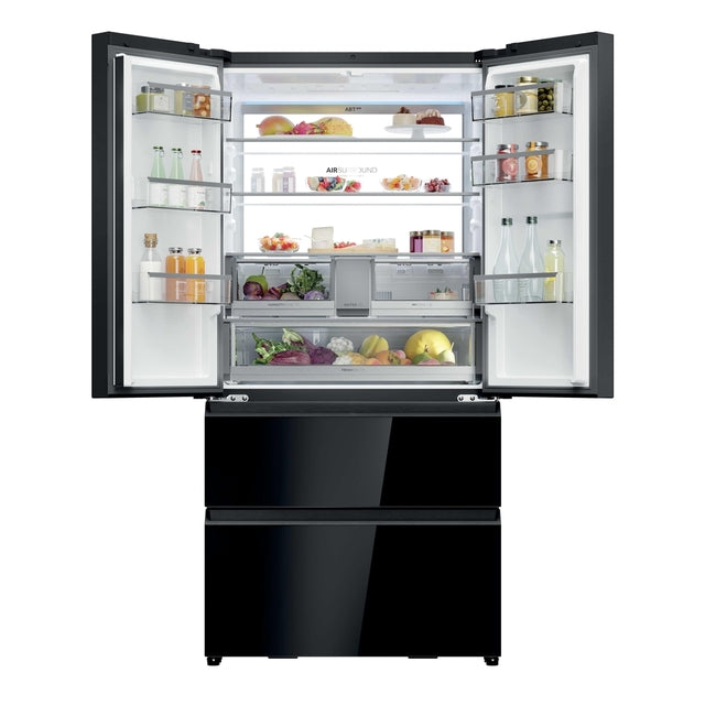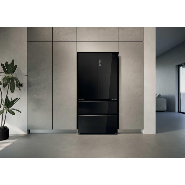 Haier French Door 90 refrigerators combine 90cm of premium storage with advanced cooling technology and ergonomic design. Energy-efficient and adaptable to any kitchen, the FD 90 Series 7 uses the hOn App and specialized zones for precise temperature and humidity control, keeping food fresher for longer.