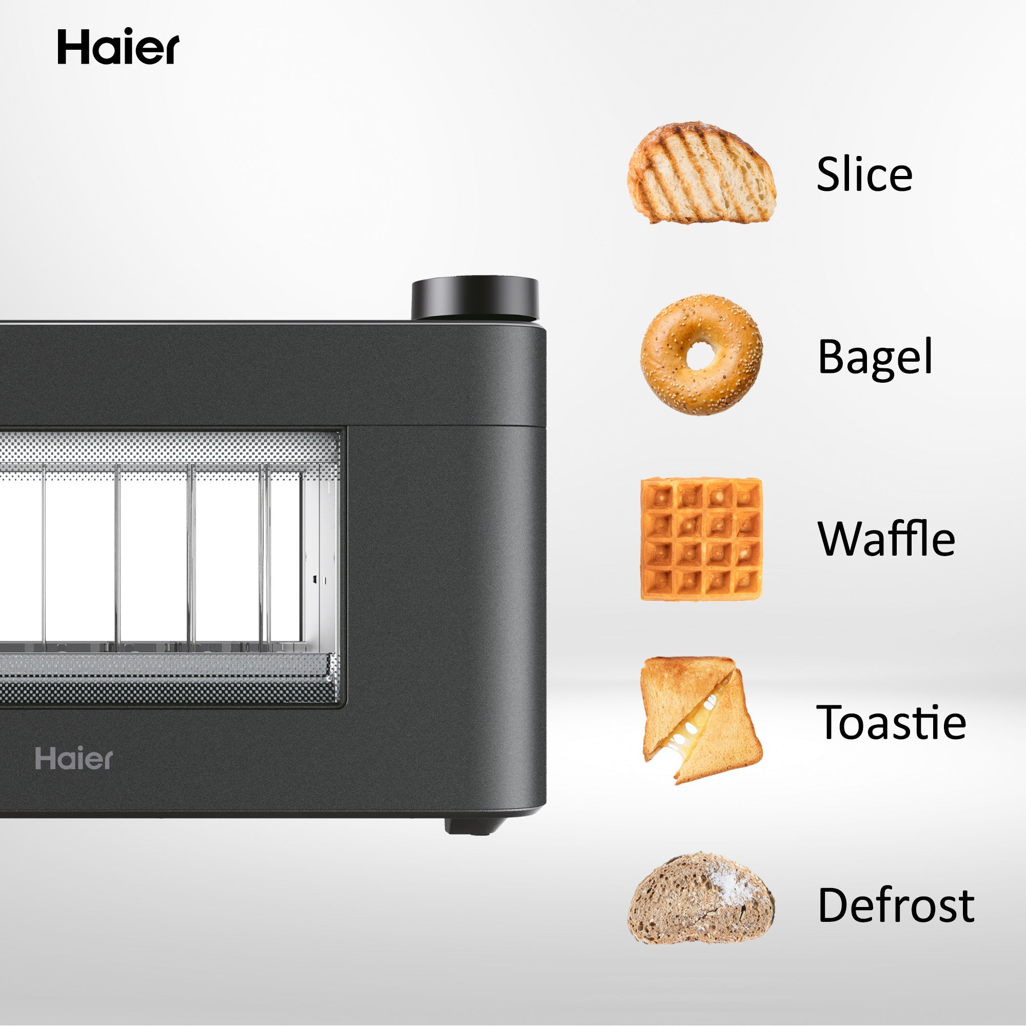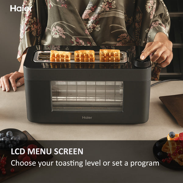 Watch the entire toasting process through the glass windows for perfectly browned results.
