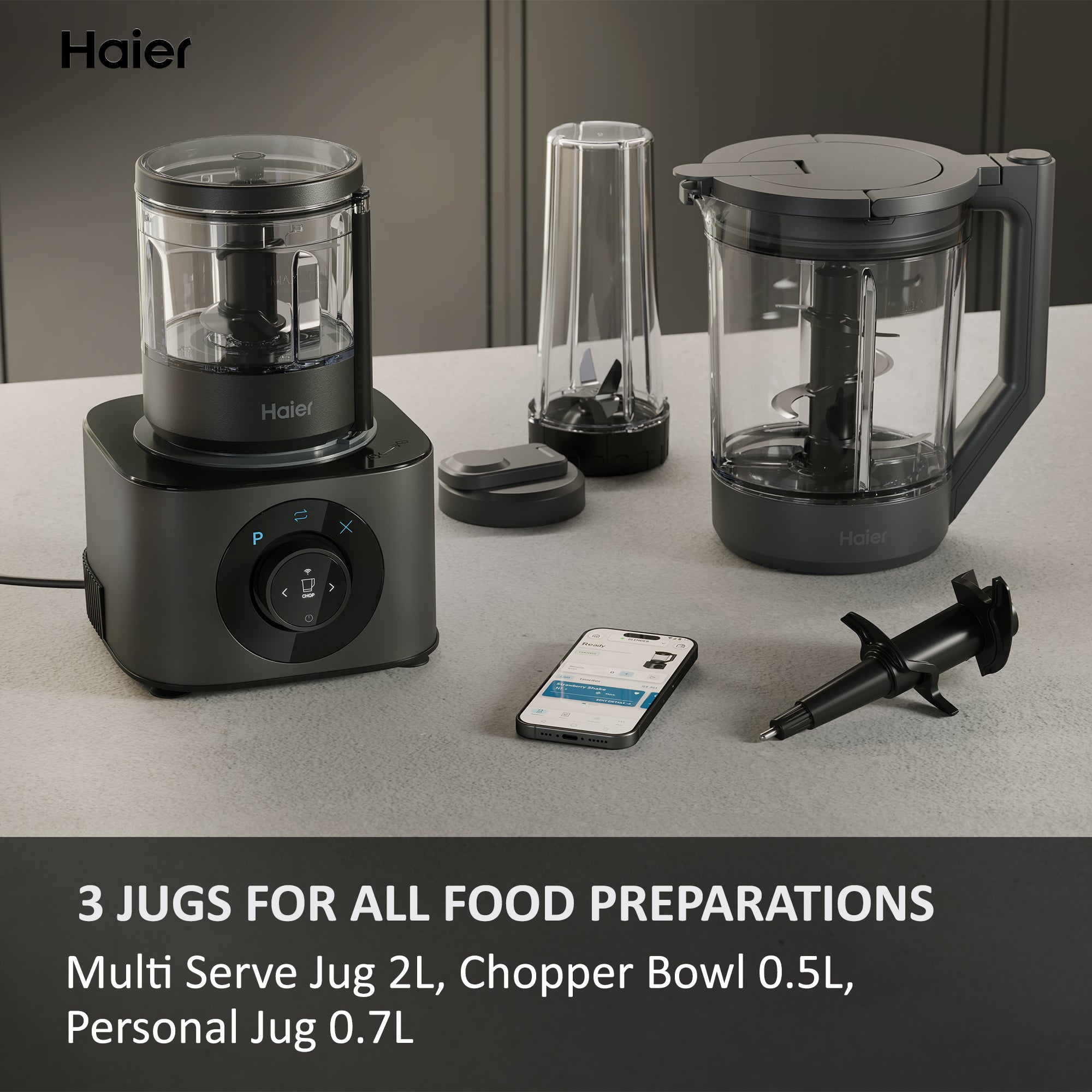 Experience versatility like never before. With 10 speeds, three different jugs, and a dedicated kneading program, you can effortlessly create everything from refreshing smoothies and hearty soups to delicious dips and perfect pizza dough.