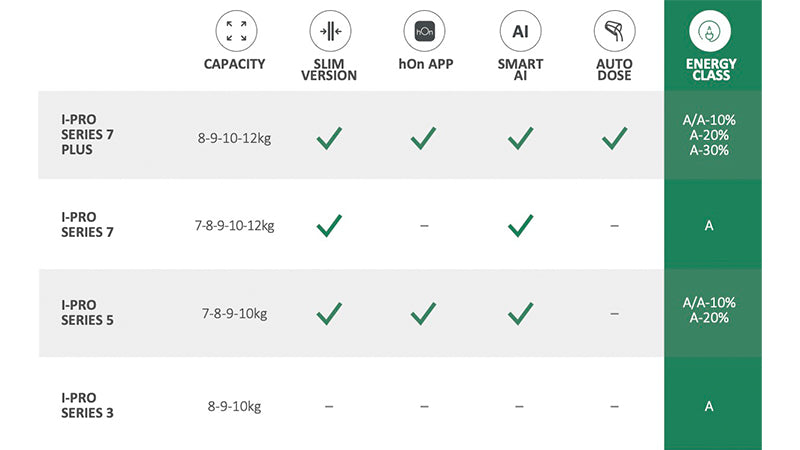 Soluciones a medida y tecnológicamente avanzadas, para una experiencia de lavado que nada tiene que envidiar a una lavandería profesional. Todas las I-Pro Series 7 Plus se caracterizan por un diseño innovador y refinado, con conectividad gracias a hOn. Además, están equipadas con un amplio tambor y una serie de programas inteligentes para satisfacer todas tus necesidades.