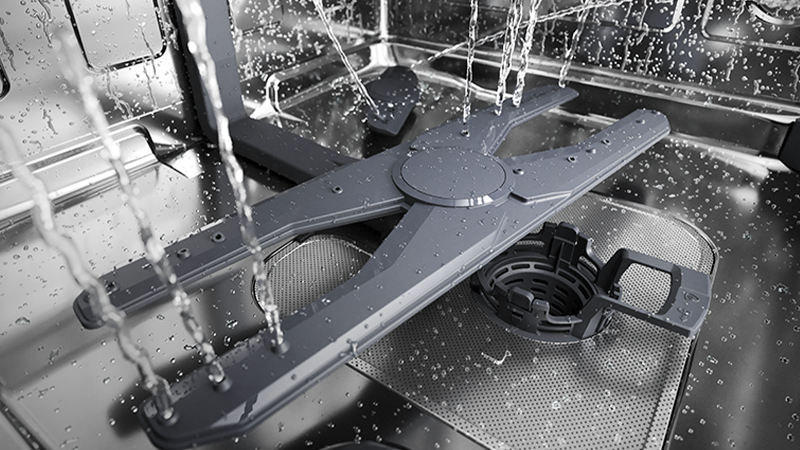 Gracias al nuevo brazo aspersor inferior en forma de "H", diseñado para tener una doble trayectoria de movimiento y la mejor cobertura, este lavavajillas puede conseguir resultados de limpieza extraordinarios incluso con programas rápidos.