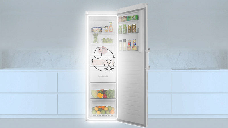 El práctico cajón Fresher Zone te permite ‘congelar’ los alimentos en el modo Congelador hasta -26°C en un período de tiempo muy corto, lo que ayuda a mantener los nutrientes y eliminar las bacterias. Este proceso mantiene los alimentos más frescos, sanos y sabrosos durante más tiempo. Mientras que en el Modo Frigorífico, se activa con la función QuickCool, lo que significa que la temperatura de tus alimentos se mantiene constantemente a 0°C.