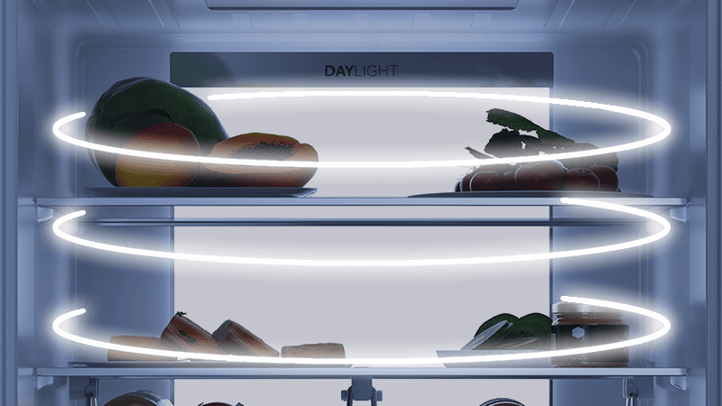 ¿Alimentos que mantienen su frescura y calidad, conservando nutrientes y propiedades organolépticas de la mejor manera posible? La tecnología Air Surround de Haier, gracias a las salidas laterales especiales, permite una distribución homogénea del aire frío en el interior del frigorífico. Así podrás mantener el sabor, la consistencia y la frescura de tus alimentos hasta en un 99%*.