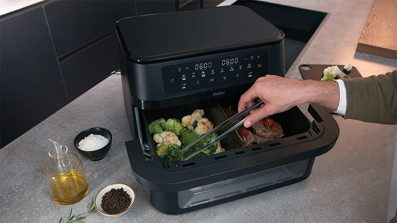 - Ventana de Visualización Integrada: Innovador diseño con ventana transparente que permite monitorizar la cocción sin abrir los cajones, manteniendo temperatura constante y garantizando resultados perfectos mientras observas el proceso.