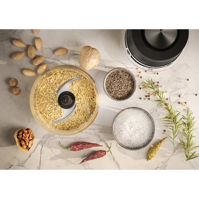 - Cuchillas Multinivel para Picado Uniforme: Sistema de cuchillas en múltiples niveles que corta los ingredientes de manera uniforme y eficaz, procesando desde hierbas delicadas hasta frutos secos duros con la misma precisión profesional.