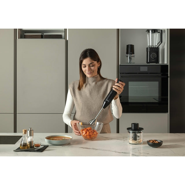 La batidora de mano Multi Series 5 HHB5B5/1 representa la solución todo en uno para tu cocina. Con Turbo Boost, 3 cuchillas, potencia variable, bol de vidrio, pasapurés, materiales premium y app hOn, esta batidora está diseñada para preparaciones versátiles y profesionales. Sistema de conexión segura y diseño duradero.