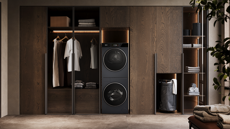 Tour compacte combinant un lave-linge et un sèche-linge en seulement 160 cm, pour un soin premium des textiles dans une solution intelligente et gain de place.