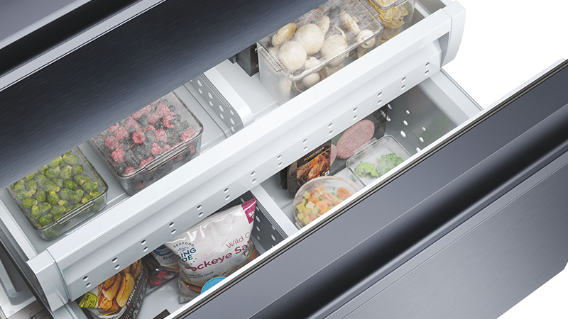 Le Fresher Shield de Haier réduit la consommation d'énergie pendant le dégivrage et empêche les aliments congelés de subir un choc thermique chaque fois que le congélateur est ouvert.