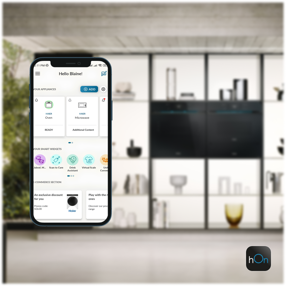Un seul geste pour une cuisine connectée qui s’adapte parfaitement à votre quotidien. Avec l'application hOn, vous contrôlez, gérez et tirez le meilleur parti des appareils connectés Haier, grâce également à l’intelligence artificielle intégrée.