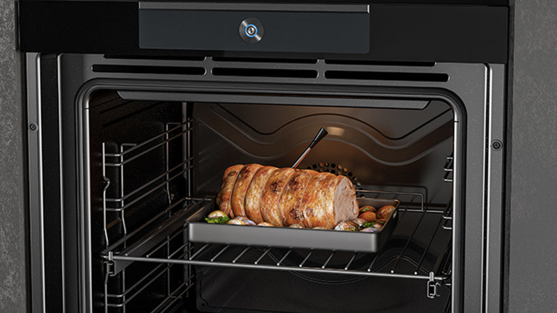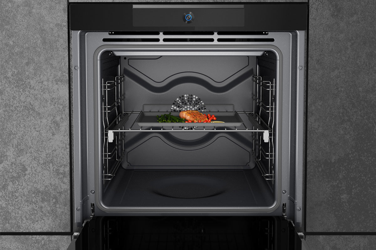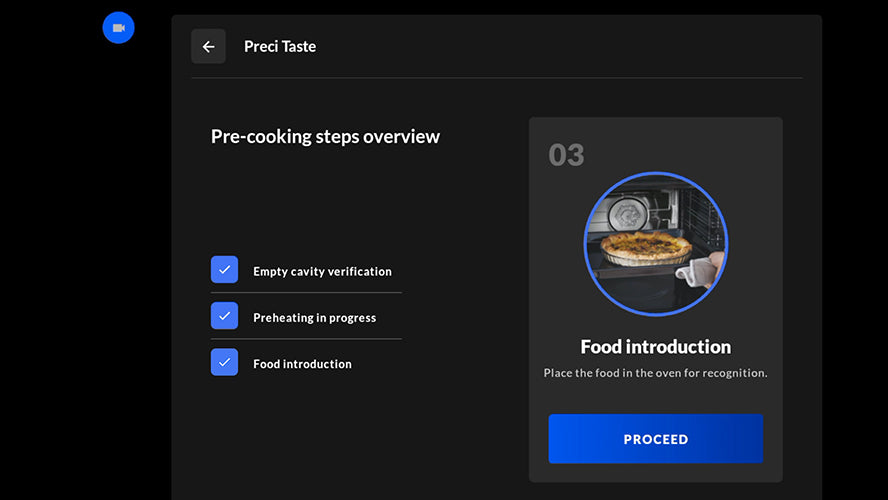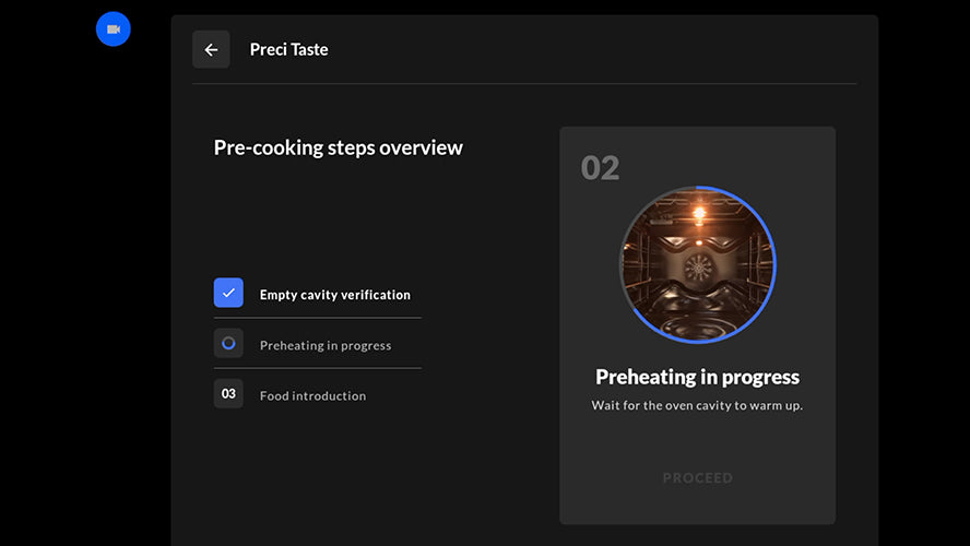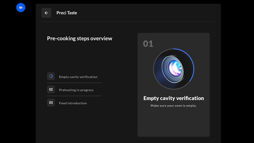 Grâce à l'intelligence artificielle, la caméra intégrée à l'intérieur de la cavité du four détecte le type d'aliment et règle automatiquement le cycle de cuisson parfait, ajuste les paramètres pendant le processus et envoie une notification lorsque les aliments sont prêts.
