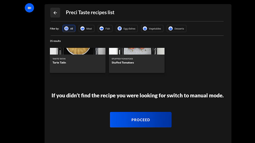 Si les aliments ne sont pas reconnus et ne figurent pas dans la liste des recettes Preci Taste®, passez en mode manuel.