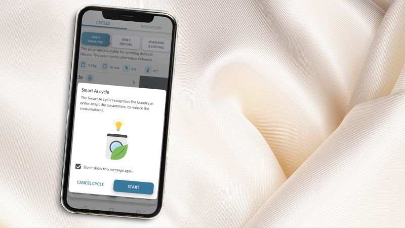 La fonction Washing-Lens vous suggère le meilleur cycle de lavage pour votre linge. Vous pouvez scanner les étiquettes des vêtements pour dresser un inventaire numérique de votre garde-robe et définir le meilleur programme pour chaque typologie de tissu.