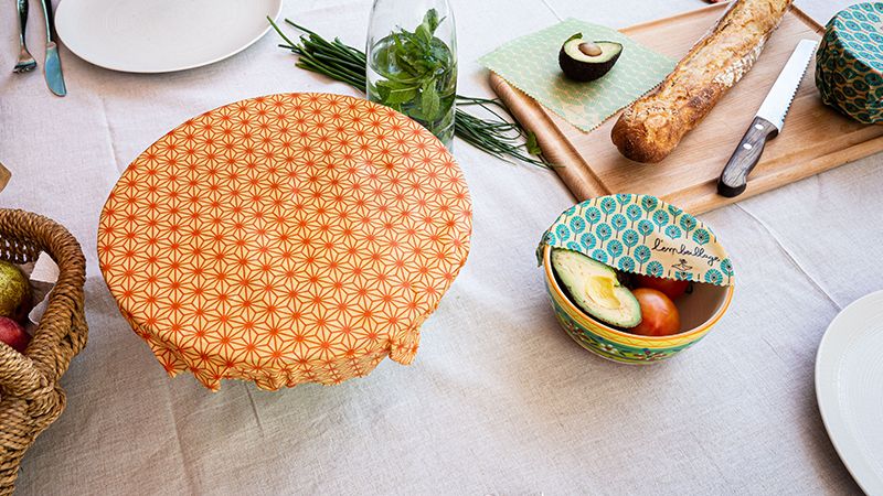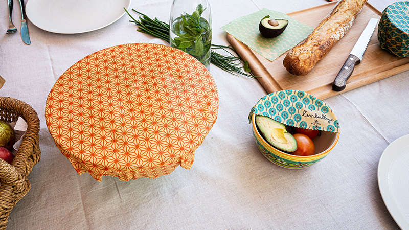 L’embeillage est une alternative lavable et réutilisable au film plastique alimentaire. Il se modèle avec la chaleur de vos mains et vous pouvez l’utiliser comme un couvercle, comme une seconde peau protectrice sur vos fruits, légumes entamés ou restes.