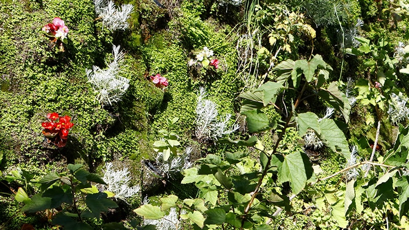 Les plantes poussent sur des membranes faites de laine de mouton et de chanvre tissés ensemble. On y greffe des petits pots, où on met la terre. Les racines vont d'abord se développer de façon assez naturelle dans la terre, et vont ensuite coloniser et tisser leur réseau de racines à travers les membranes.