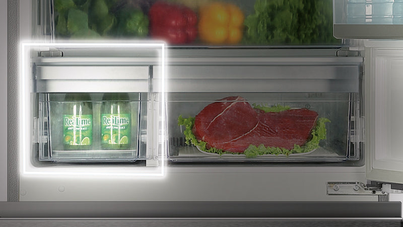 Les Fresher Sensors sont installés sur chaque clayette du réfrigérateur afin de superviser la température et de garantir que l’air froid est uniquement distribué là où il est nécessaire. Grâce à cette astucieuse innovation, vous êtes certain que les denrées alimentaires sont amenées rapidement à leur température optimale, en préservant les précieux nutriments, en optimisant l’utilisation d’énergie et en prolongeant la durée de conservation de vos aliments.