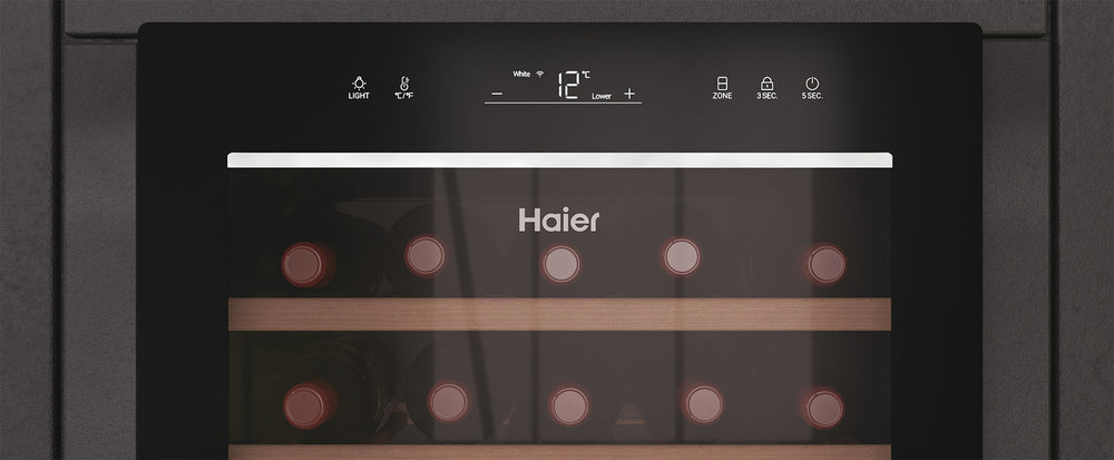 Les rayons UV étant l’ennemi du vin, les caves à vin Haier sont équipées d'une porte vitrée traitée anti-UV à triple épaisseur : non seulement elle empêche les rayons nocifs et le rayonnement lumineux de pénétrer dans la cave, mais elle permet aussi de mettre en valeur avec élégance sa collection.