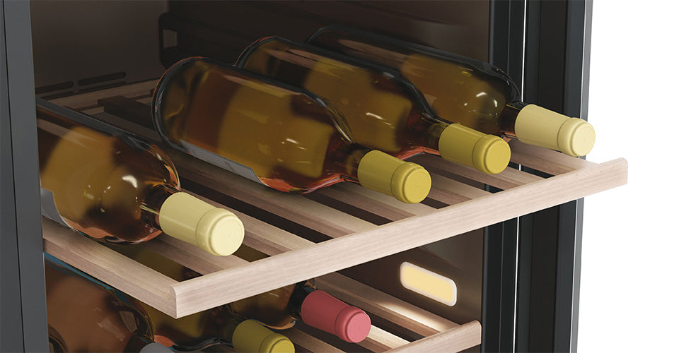 Les caves à vin Haier sont dotées de clayettes en bois de hêtre certifié FSC.