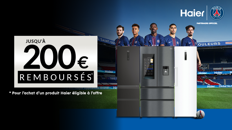 Du 23 juin au 27 juillet 2025 inclus 120 € remboursés pour l’achat du four Haier référence H6 ID46R5YTB dans un magasin participant à l’opération.