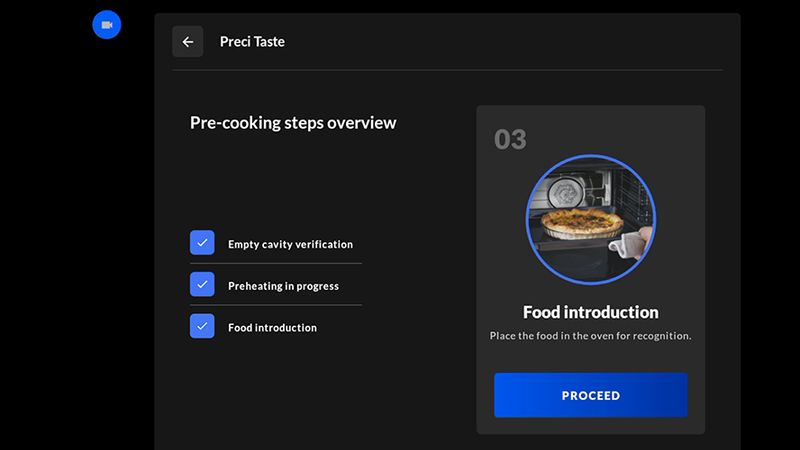 Grâce à l'intelligence artificielle, la caméra intégrée à l'intérieur de la cavité du four détecte le type d'aliment et règle automatiquement le cycle de cuisson parfait, ajuste les paramètres pendant le processus et envoie une notification lorsque les aliments sont prêts.