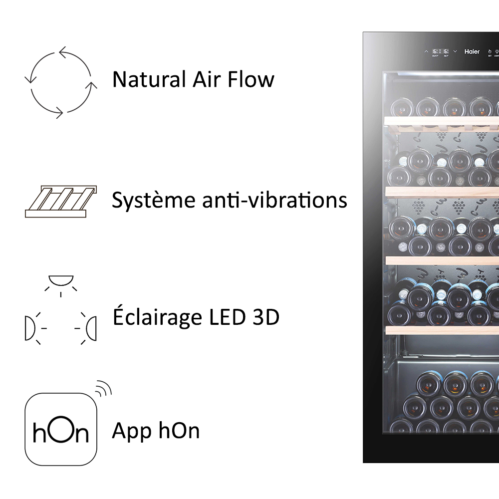 - Système anti-vibration: préserve vos vins et leurs saveurs de façon optimale