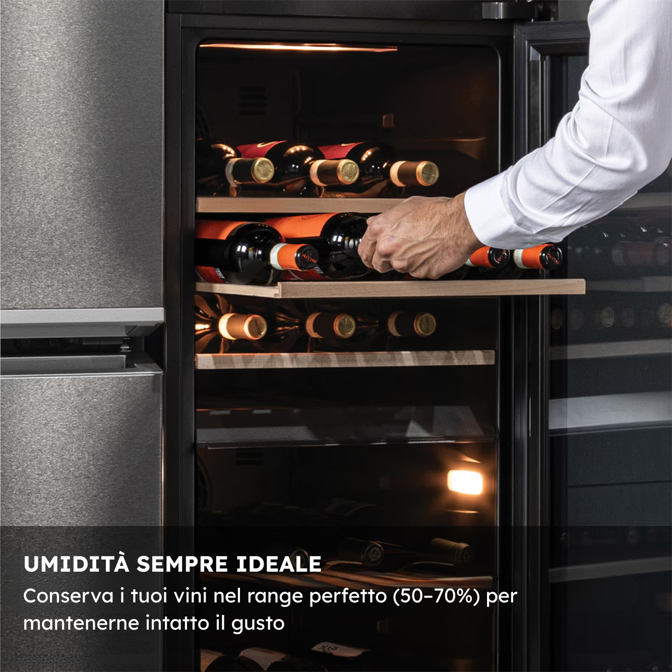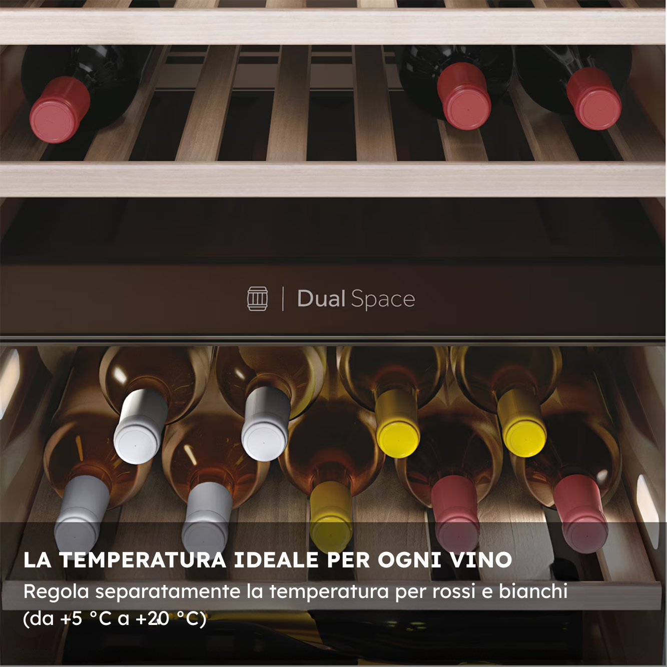 - Compatta e capiente: solo 50 cm di larghezza per ospitare fino a 42 bottiglie, perfetta anche se hai poco spazio in casa