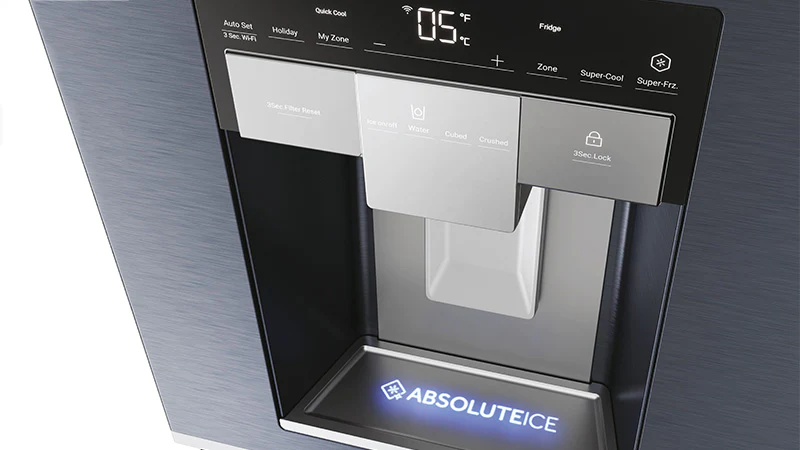 - Dispenser integrato di acqua e ghiaccio con allacciamento idrico