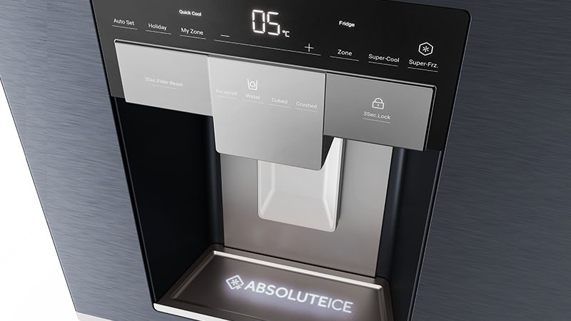 Šaldytuvo durelėse įmontuotas „Absolute Ice“ ledukų gaminimo aparatas turi savo vėsinimo sistemą, visiškai nepriklausomą nuo šaldytuvo ir šaldiklio. Tai reiškia, kad modulio šaltas oras neturi kvapų, nes jie neprasiskverbia iš kitų šaldytuvo vietų. Koks rezultatas? Ir ledukai, ir filtruotas vanduo yra krištolo skaidrumo ir be nepageidaujamų kitų produktų kvapų.