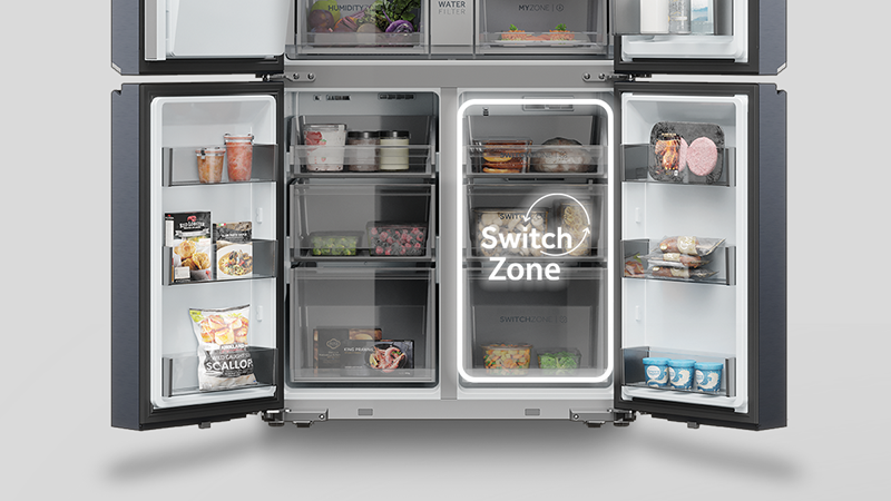Sklandus zonos funkcijų perjungimas. Speciali „Switch Zone“ funkcija leidžia lengvai perjungti vėsinimą ir šaldymą toje pačioješaldytuvo zonoje. Skaitmeniniame ekrane ant prietaiso durelių, galite pakeisti temperatūrą nuo -18 °C iki +5 °C, atsižvelgdami į tai, ar reikia daugiau vietos šaldikliui ar šaldytuvui.