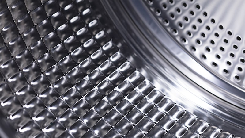 De droogtrommel heeft een oppervlak dat speciaal is ontworpen om ervoor te zorgen dat zelfs jouw meest delicate stoffen in perfecte staat blijven, hoe vaak je ze ook droogt. De gladde ‘kussenvormige’ pads zorgen ervoor dat jouw wasgoed zachtjes over het oppervlak glijdt terwijl de trommel draait, wat betekent dat de stof nooit in aanraking komt met wrijving die in de loop van de tijd kwaliteitsverlies kan veroorzaken.