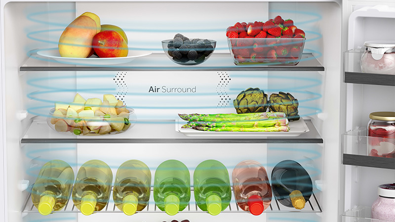 Ervaar de ultieme frisheid met Haier’s Air Surround-technologie. Deze innovatieve functie zorgt voor een zachte en gelijkmatige luchtstroom rondom je koelkast. Zo blijven smaak, consistentie en sappigheid behouden, alsof het net vers is.