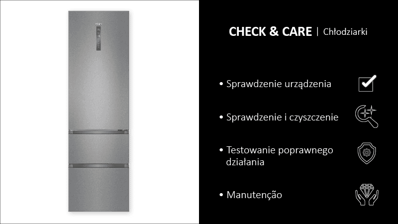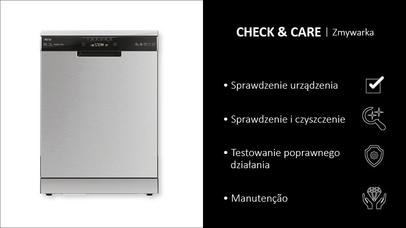 Haier oferuje usługę Check & Care pielęgnacji i konserwacji Twoich urządzeń. Skontaktuj się z infolinią Haier 22 5851111 lub 801081314 aby znaleźć najbliższy autoryzowany serwis świadczacy usługi Check & Care. Dążymy do zagwarantowania profesjonalnej obsługi dopasowanej do Twoich potrzeb. Regularna pielęgnacja i konserwacja pozwoli zachować niezawodność i wydajność Twoich urządzeń. Nasi wyspecjalizowani technicy dokonają odpłatnie sprawdzenia sprzętu i zapoponują najlepsze rozwiazania odnośnie jego uzytkowania i konserwacji. Zadzwoń 22 5851111 lub 801081314*
