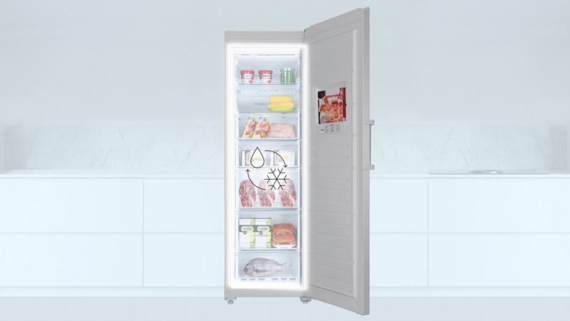 O congelador INSTASWITCH é 26%* maior do que outros congeladores verticais da gama de produtos Haier, disponibilizando até 330 litros** de espaço de armazenamento, totalmente No Frost. Converta todo o seu congelador INSTASWITCH num frigorífico com apenas um toque num botão.