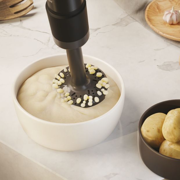Cu 3 lame extrem de ascutite si un buton de declansare precis, mixerul vertical Haier Series 5 mixeaza perfect orice aliment. Dotat cu un accesoriu pentru tocare din sticla, teluri duble si o presa pentru cartofi*, este aliatul tau culinar pentru preparate gourmet.*