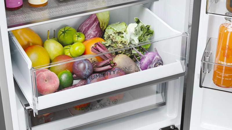 Zásuvka Humidity Zone je prevratným riešením, ktoré umožní zachovať ovocie a zeleninu čerstvé dvakrát dlhšie*. Vďaka technológii Humidity Control System dokáže udržať stabilnú 90% vlhkosť, čím sa zabraňuje tvorbe kondenzátu a zlepšuje sa uchovanie potravín.